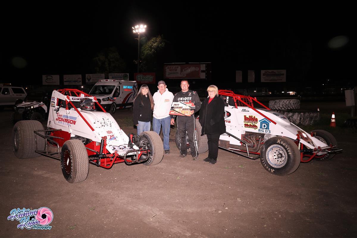 Antioch, CA...May 6...Shawn Arriaga of Antioch won the 25 lap Wingless Spec Sprint Main Event Saturday night at Antioch Speedway. This was the 25th season opener for the division, and Arriaga had won the Hunt Series race a couple of weeks ago. In both cases, the third-generation racer was piloting the Dave Johnson owned car.