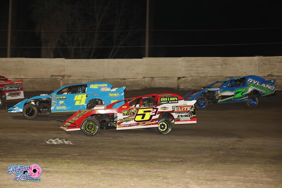 The Pacific Coast Hobby Stock championship battle was poised to see a big change last week in favor of Clarence Holbrook III of Galt. Holbrook was in the hunt for the win when he got caught up in another driver's spin and fell back several positions. Rather than possibly taking the lead, he ended the night still 12 points behind Ryan Hart of Dos Palos. Hart started deep in the pack and ended up fifth.