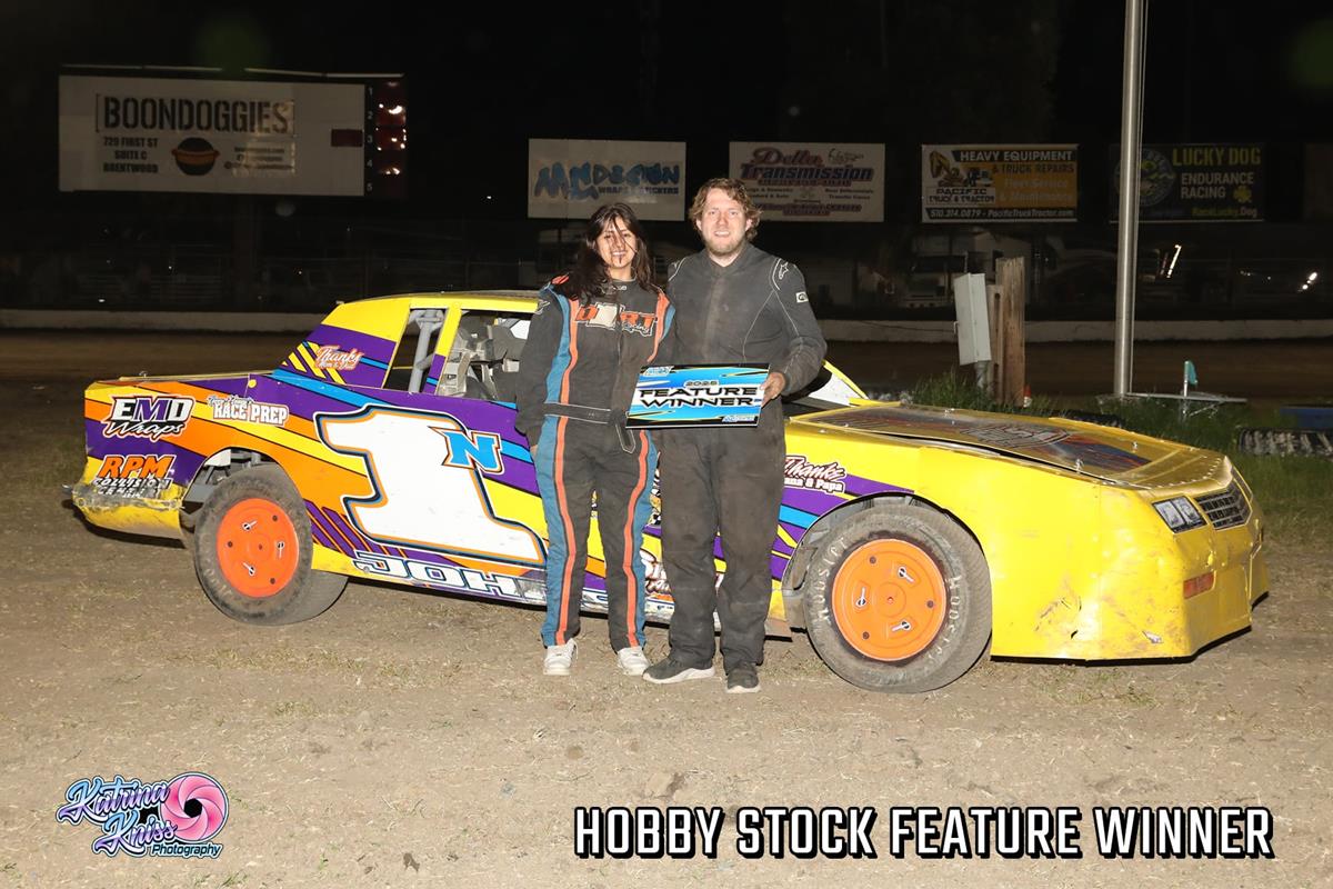 Bakersfield's Nicholas Johnson won the 20 lap Pacific Coast Hobby Stock Main Event. Johnson arrived just in time to get a few hot laps, but he impressed with victories in both the feature race and his eight lap heat.
