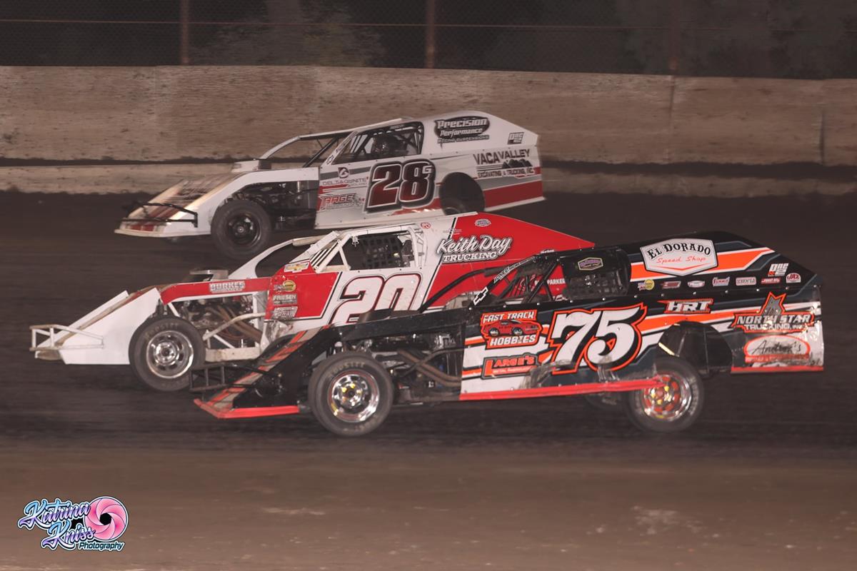 Last time, the IMCA Modifieds featured a good early battle between two of the division's biggest stars, Bobby Hogge IV of Salinas and Troy Foulger of Oakley, along with Matt Kampfraat of Granite Bay. Hogge made a big move around both cars near the midway point of the race and sped on to his 70th career IMCA Modified win at the track. Hogge is also approaching 80 combined feature wins, and it's a race between he and Foulger to see who will get there first.