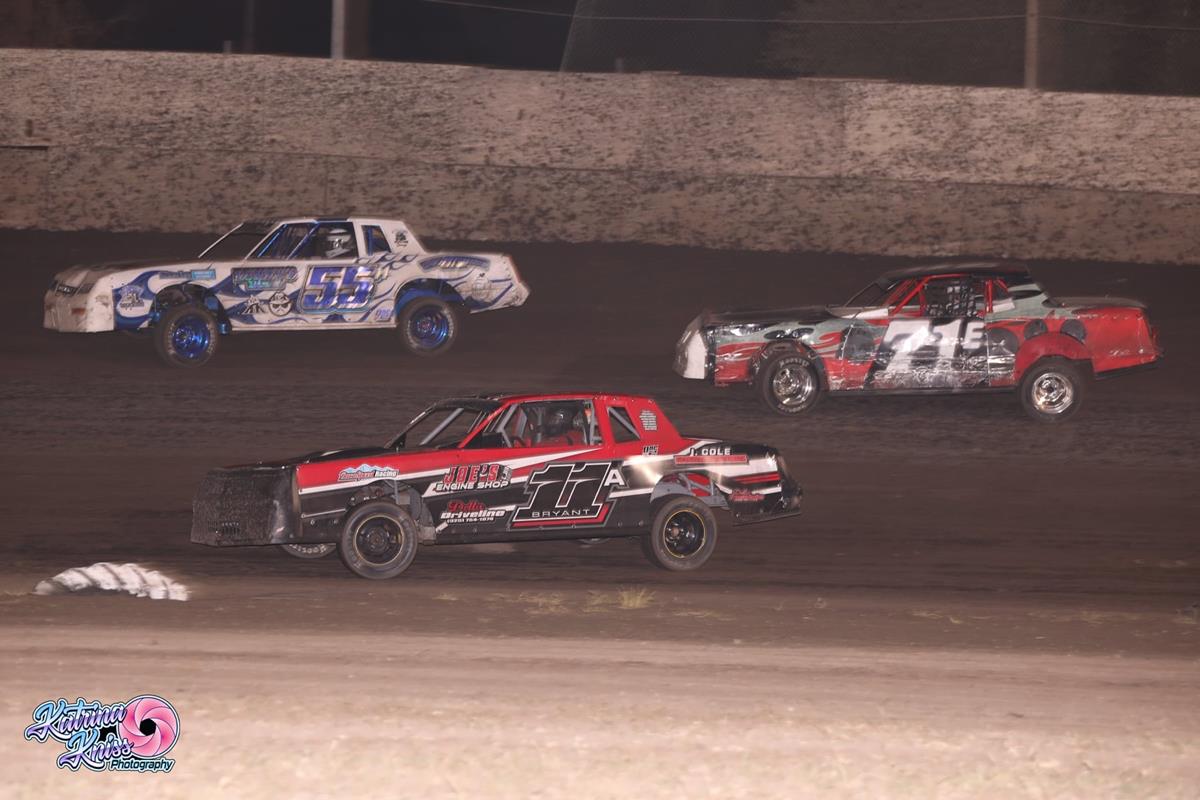 Consistency is a hallmark to winning championships, and thus far, only the Oakley duo of Charlie Bryant and James East have Top 5 finishes in both races. A look atop the standings finds Bryant holding a two point advantage over East, who is currently tied with Hobby Stock veteran Chris Long of Antioch. After transmission issues at Petaluma a week earlier, Long piloted the John Keith car to a sixth place finish last week to maintain his point effort.