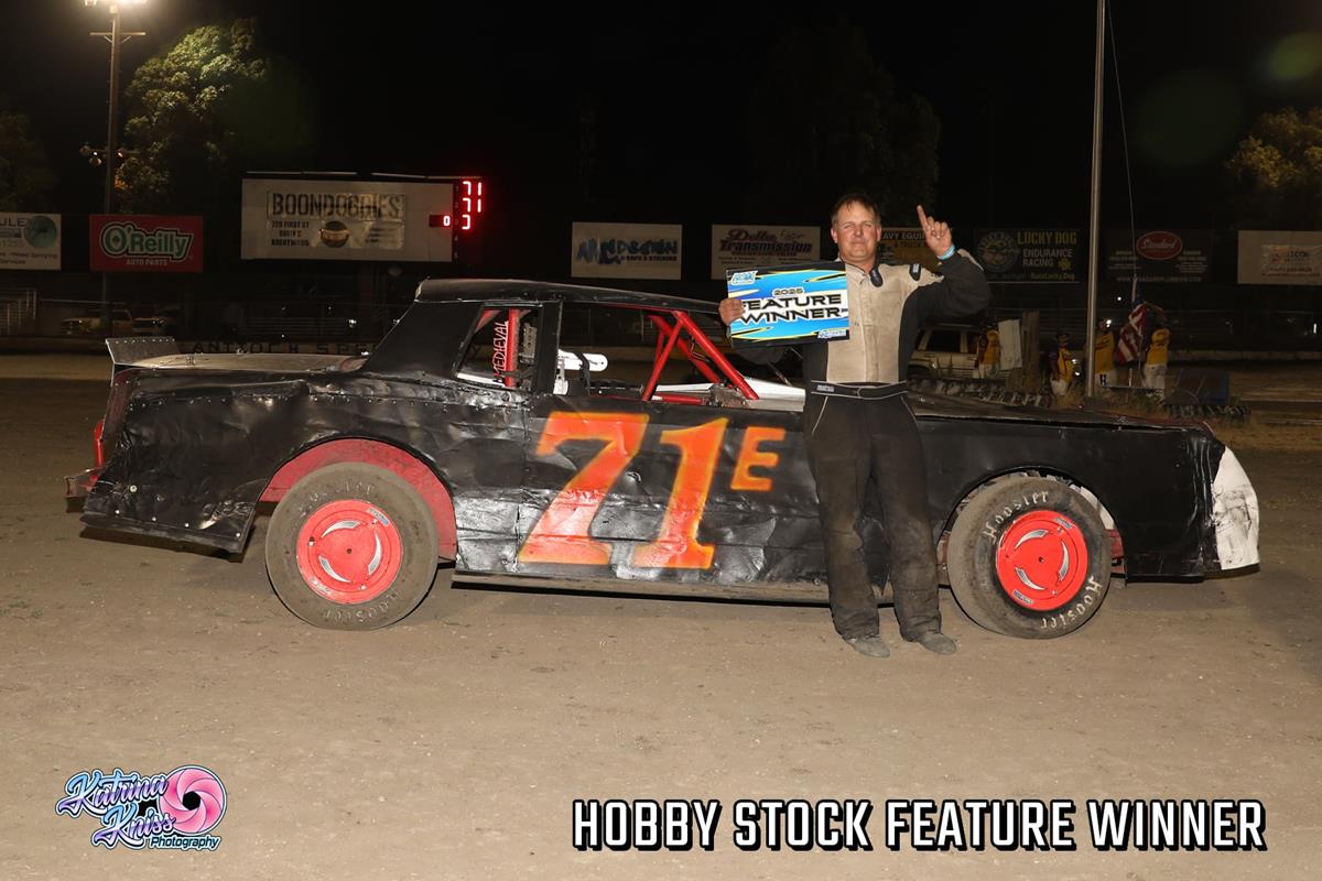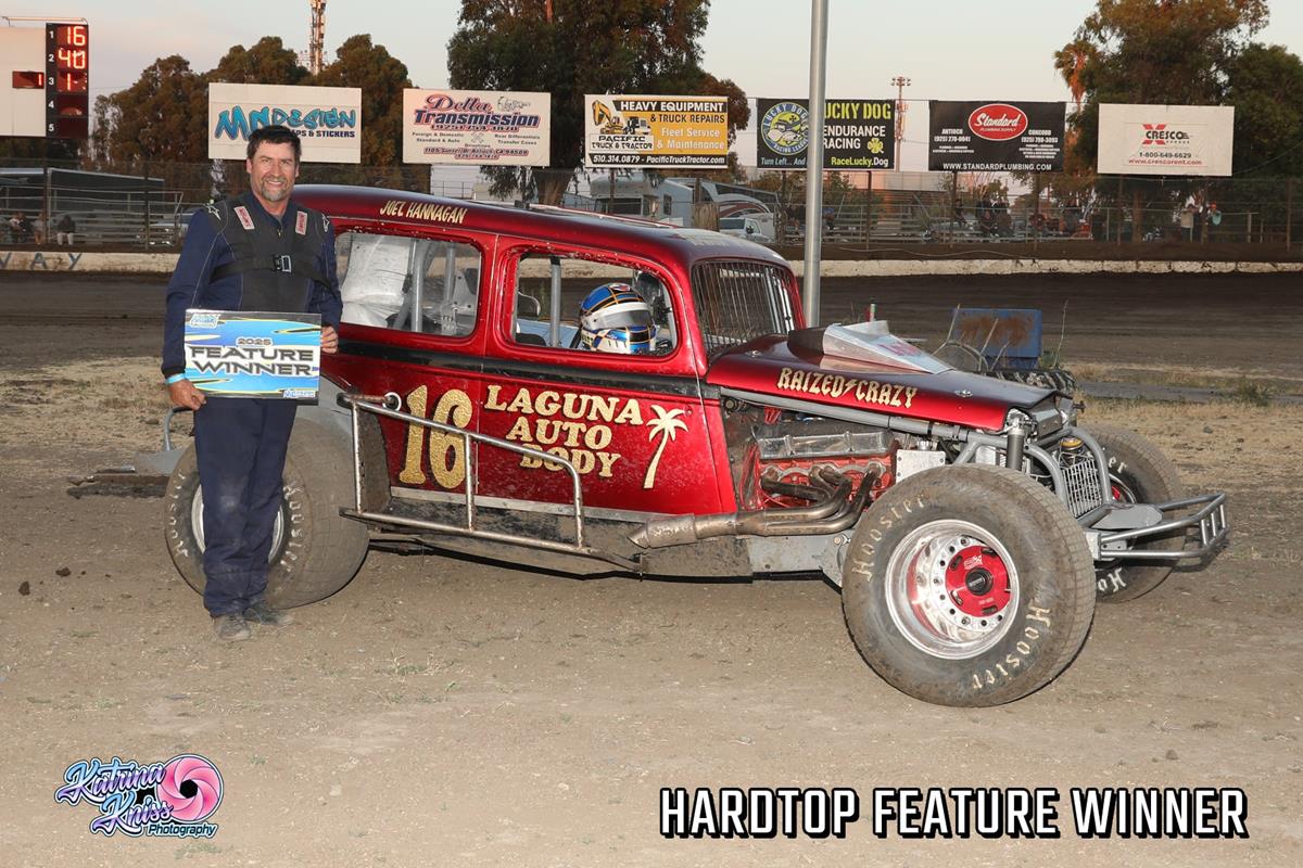 Joel Hannagan of San Jose won the 15 lap Hardtop Main Event. This was the first Antioch win of the season for the reigning champion and the 20th of his Antioch Hardtop career. He also won a few days earlier in the Sportsman Main Event during the Merced County Fair.