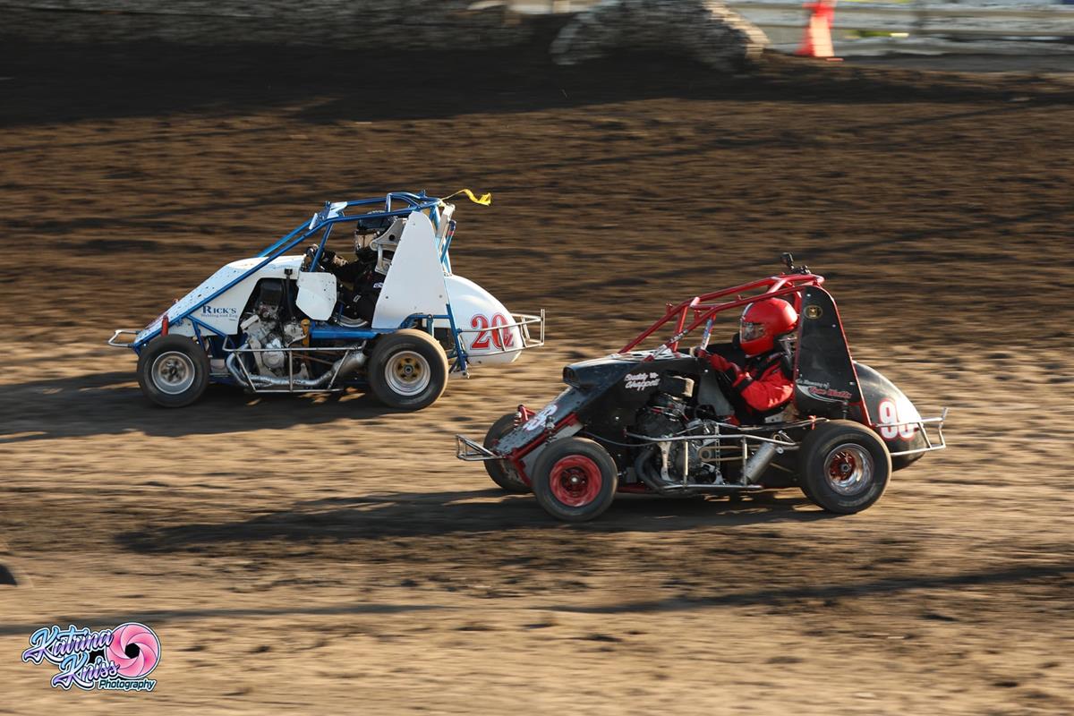 Second ranked Micro Sprint racer Buddy Chappell #99 and last year's top rookie Devon Zuffa #20z. Photo by Katrina Kniss
