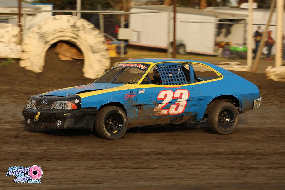 Don Abitz #23 recently returned to the Mini Stock division, and he enjoyed a Top 5 finish at Petaluma last week. Photo by Katrina Kniss