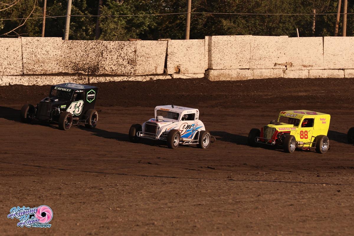 Dwarf Car point leader Sean Catucci #43, David Hays #9 and Travis Day #88. Photo by Katrina Kniss