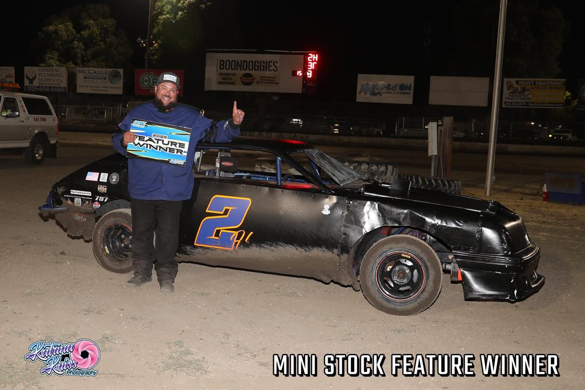 Jason Higgins of San Jose led from start to finish to pick up his first 15 lap Mini Stock Main Event win at Antioch. Higgins won three features at Petaluma Speedway this year as he finished third in the final standings there.