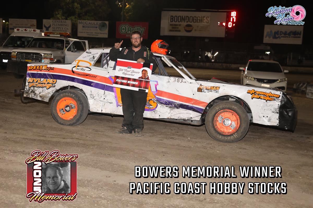 James Thomson of Pittsburg won the 20 lap Pacific Coast Hobby Stock Main Event. This was his second win of the season, and he became the third different winner in as many Bill Bowers Memorial races for this division.